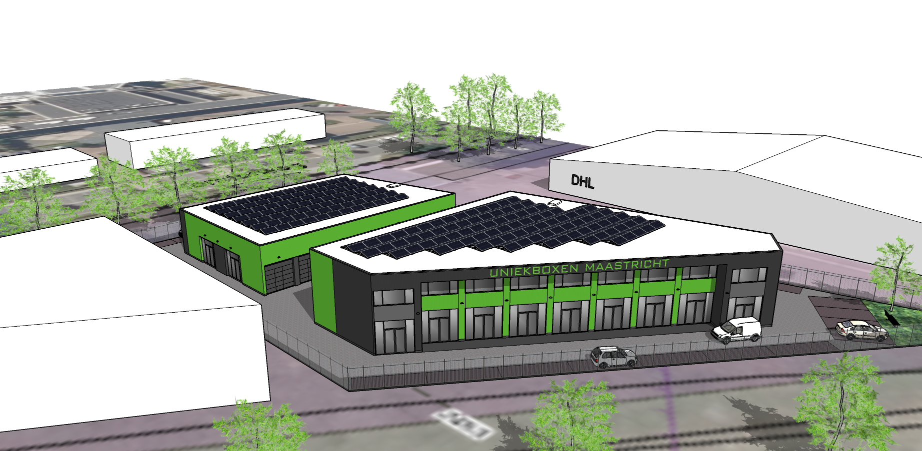 Het ontwerpplan voor Uniekboxen Maastricht dat nu op tafel ligt bestaat uit twee gebouwen. Het gebouw aan de Europalaan telt 2 bouwlagen (Type 2), en het gebouw aan de Horsterweg krijgt 1 bouwlaag (Type 1). Het ontwerp is nog niet zeker en willen graag weten wat u het liefste ziet in Maastricht airport. We staan open voor de input van alle ondernemers die willen vestigingen in Maastricht Airport.